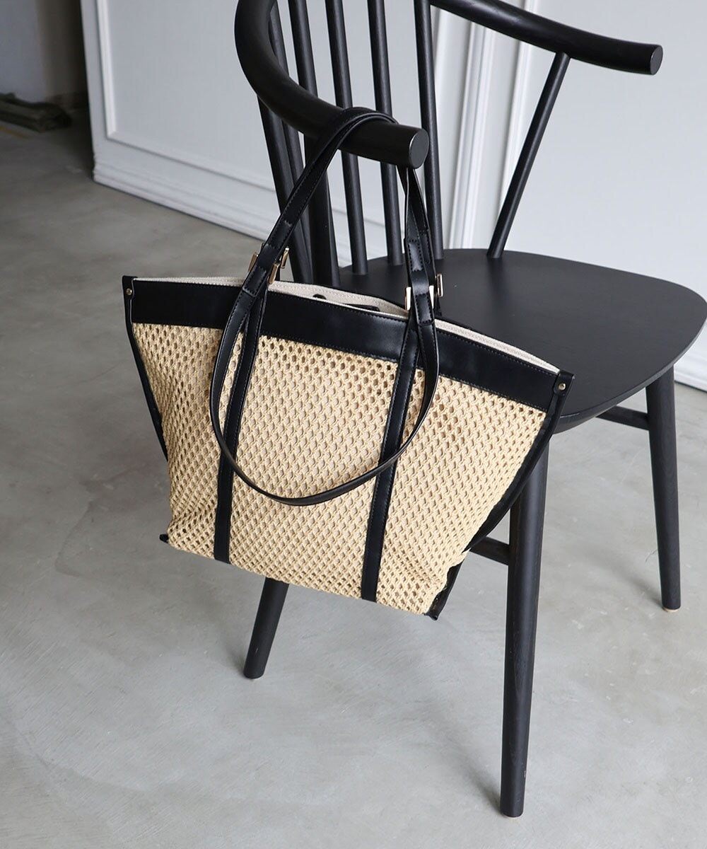 【デイリー/ミディアムサイズ/軽量】 ファー切り替えトートバッグ