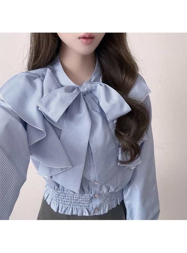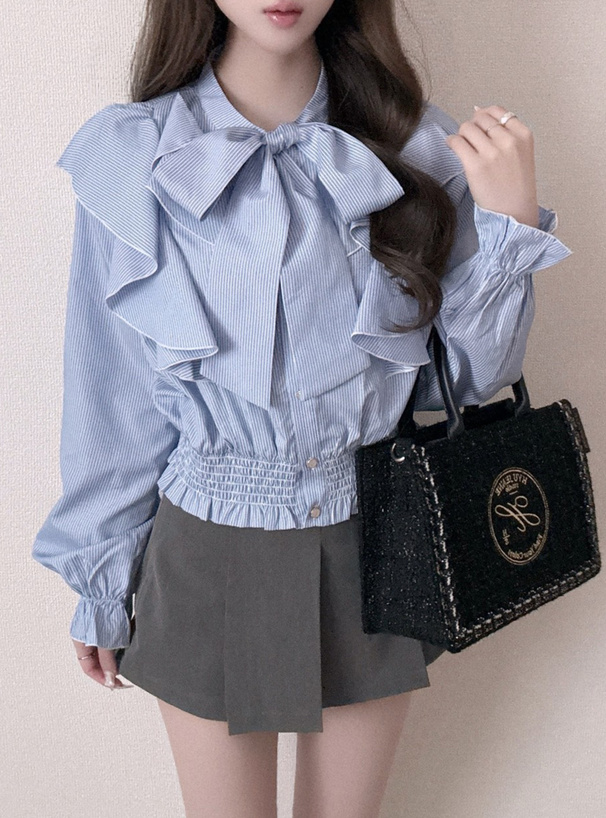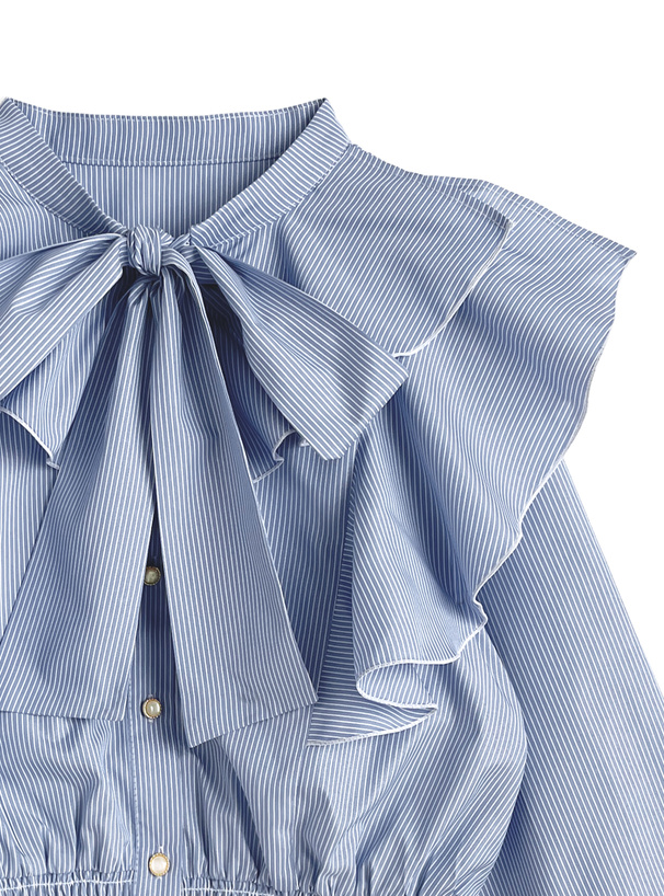 リボンタイ付きストライプ柄ショート丈シャツ×キャミソールミニワンピースセットアップ[tg910]