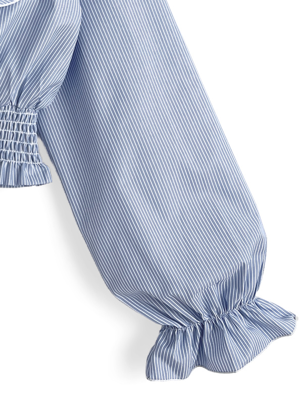 リボンベルト付きストライプ柄オープンショルダーシャツワンピース[tg793]