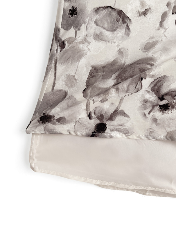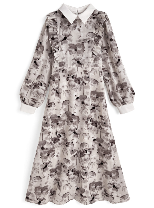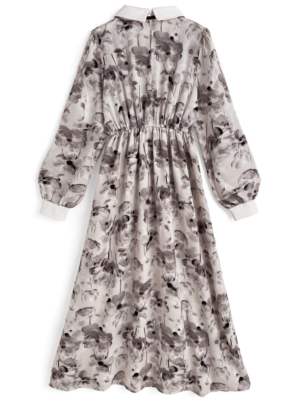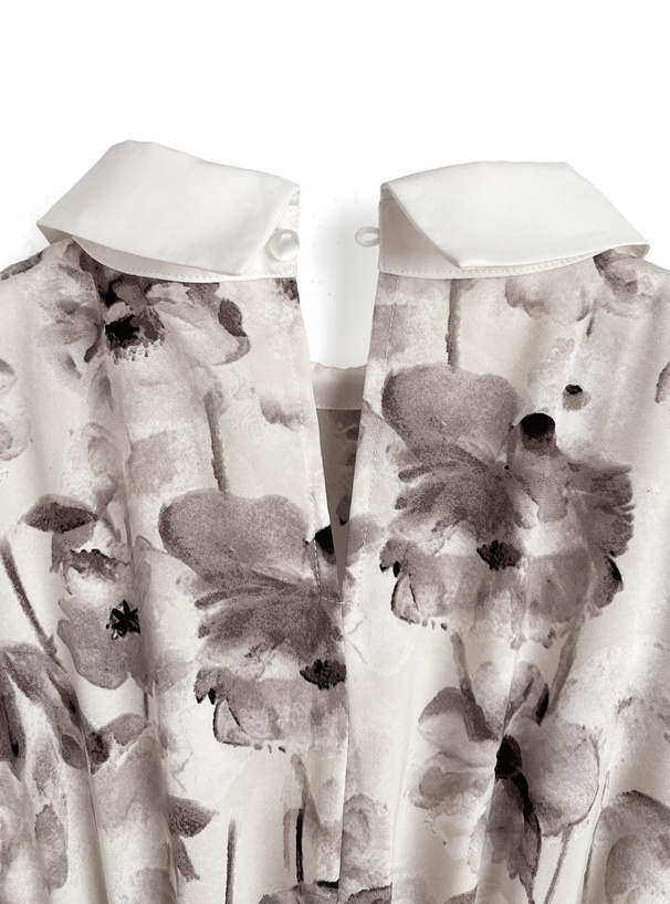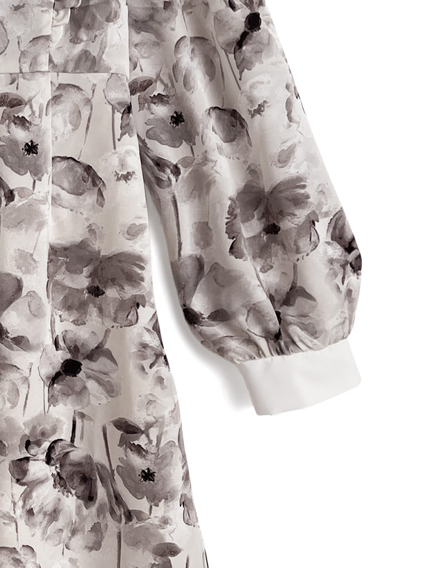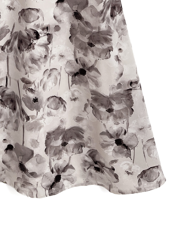 水彩タッチのフラワープリントをのせた、上品で大人フェミニンなワンピース。