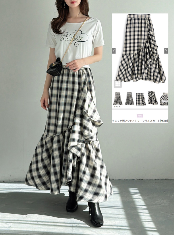 シックで落ち着きのあるチェック柄の大人レディなスカートアイテム。