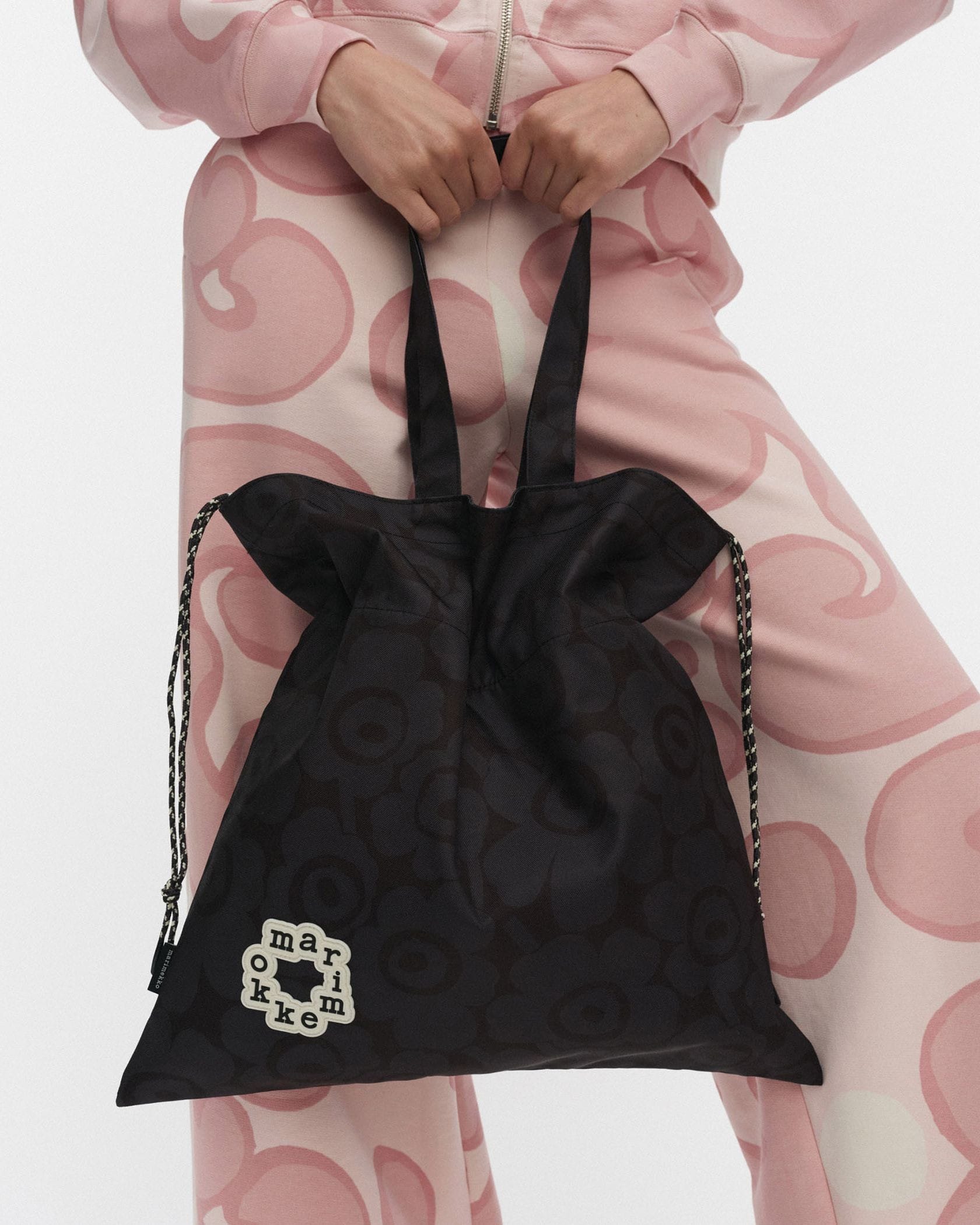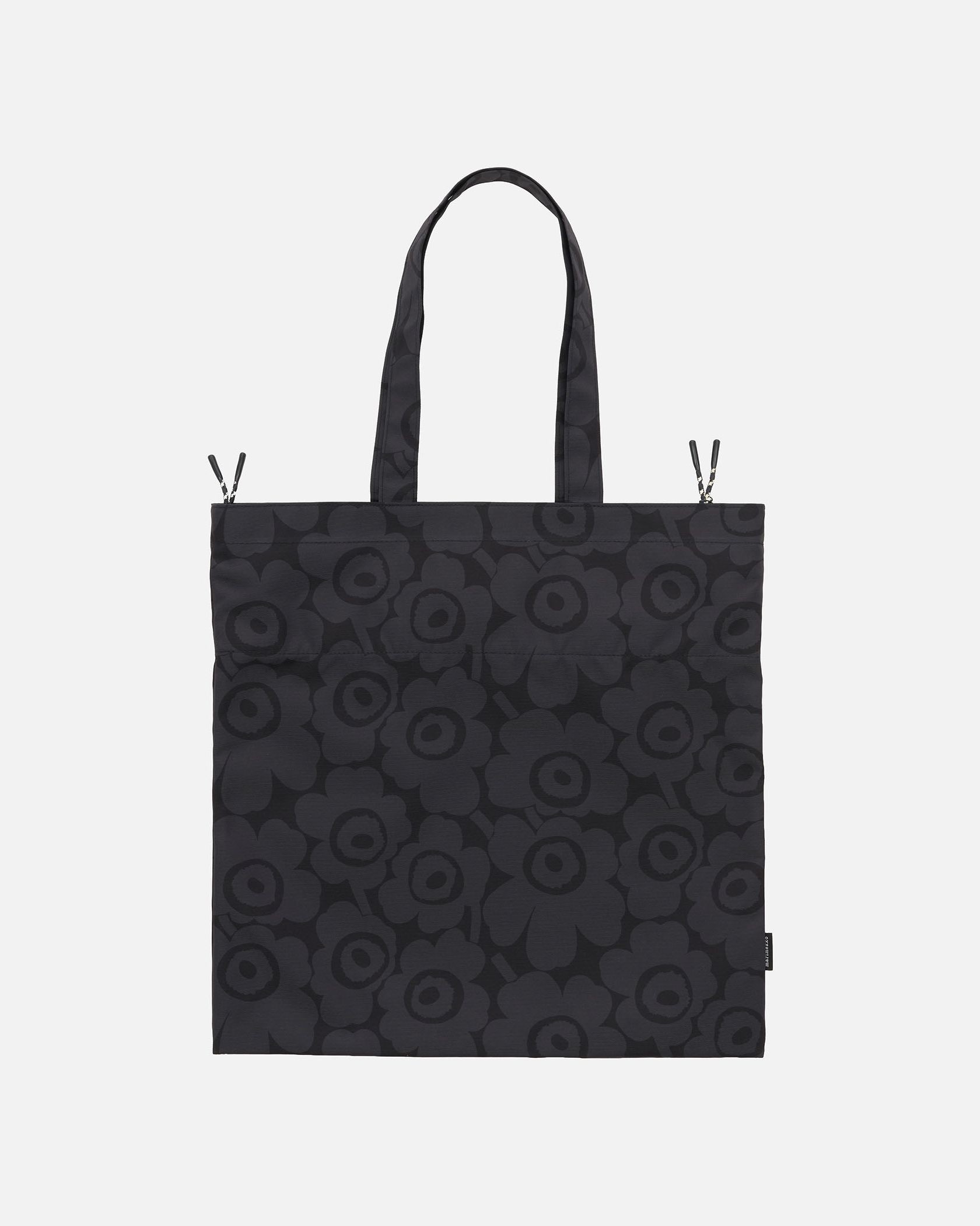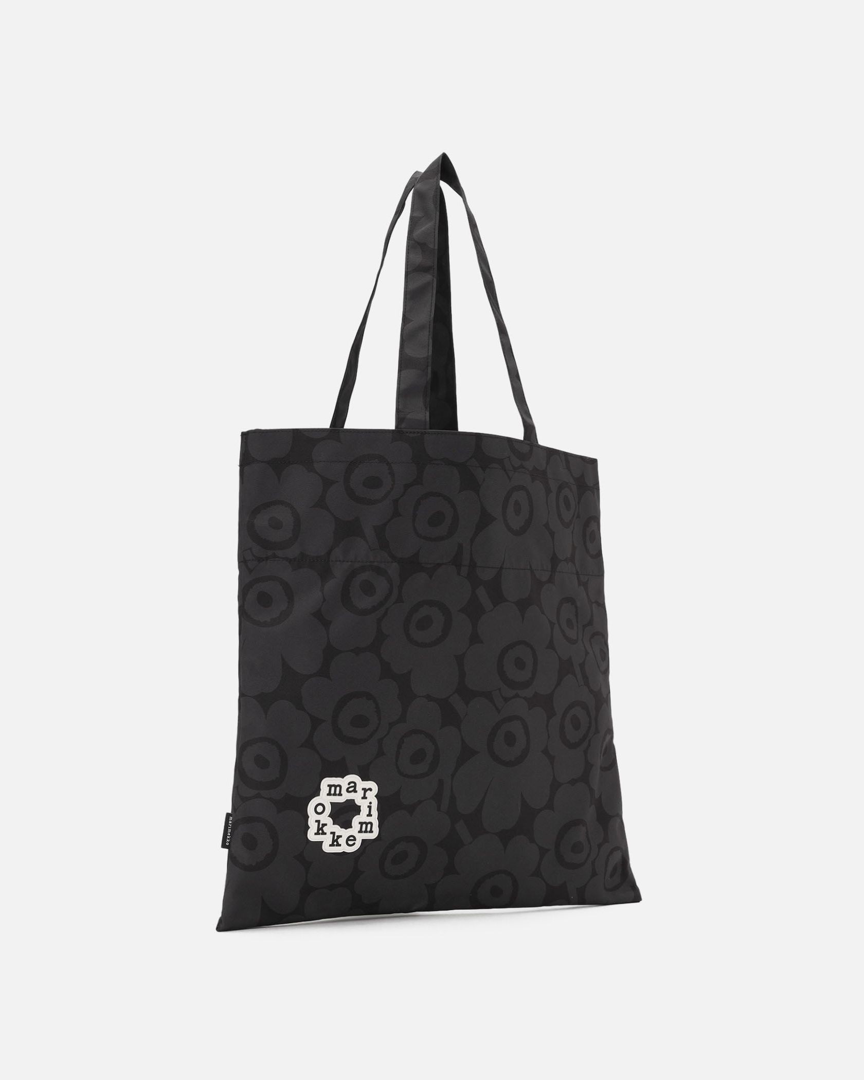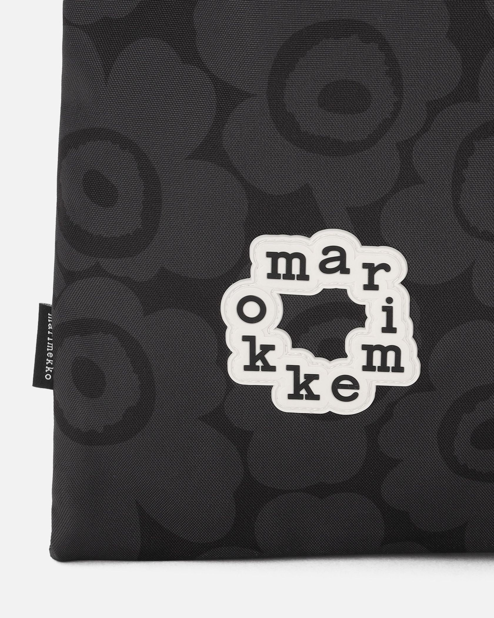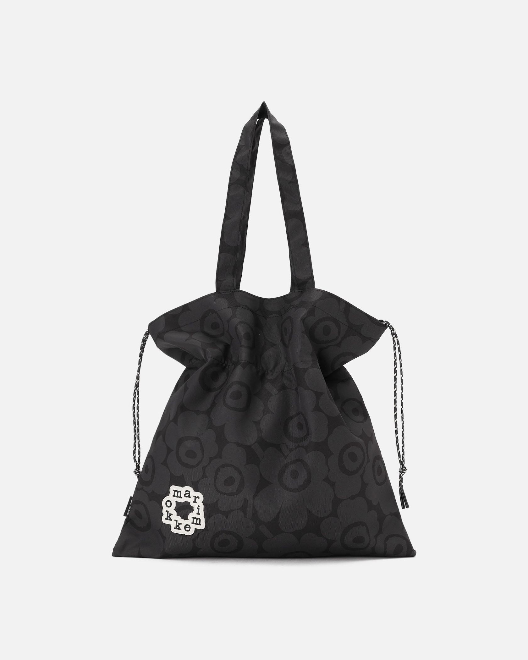 Marimekkoを代表するUnikko柄のトートバッグ。スクエア型、または、トップをきゅっと絞って巾着型のフォルムでも使用可能なユニークなデザイン。サークル型のブランドロゴがスタイリッシュなデザインポイント。丈夫で扱いやすいポリエステル素材。あらゆるお出かけにフィットする便利なアイテムです。