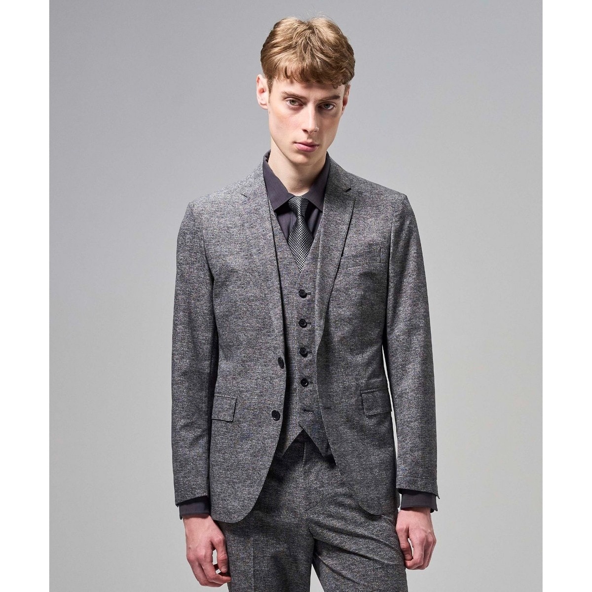 同素材のベスト・パンツと合わせた3ピーススタイルなら、機能性と端正さを兼ね備えた夏のセットアップが完成。