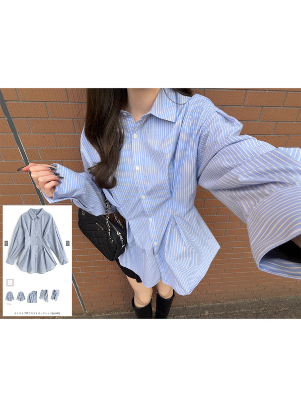 ストライプ柄オーバーサイズシャツ[on396]
