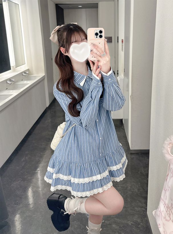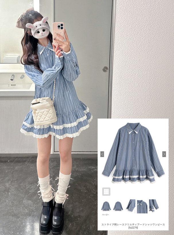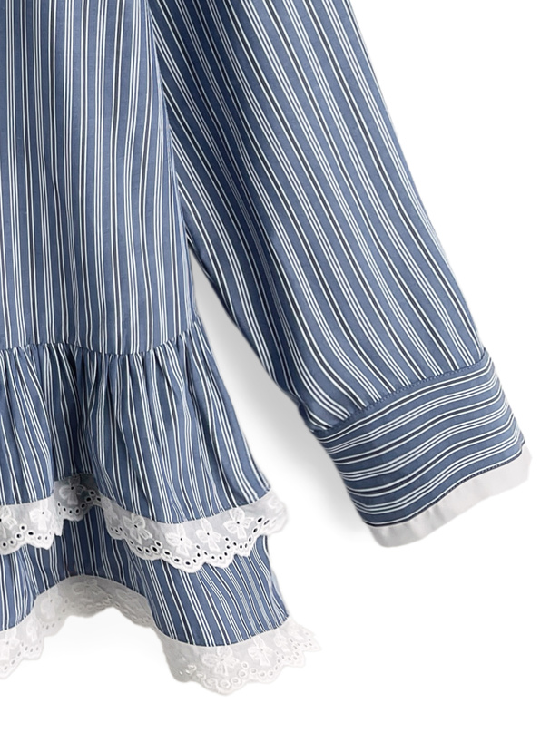 裾部分にはスカラップレースをあしらいガーリー度を高めた。