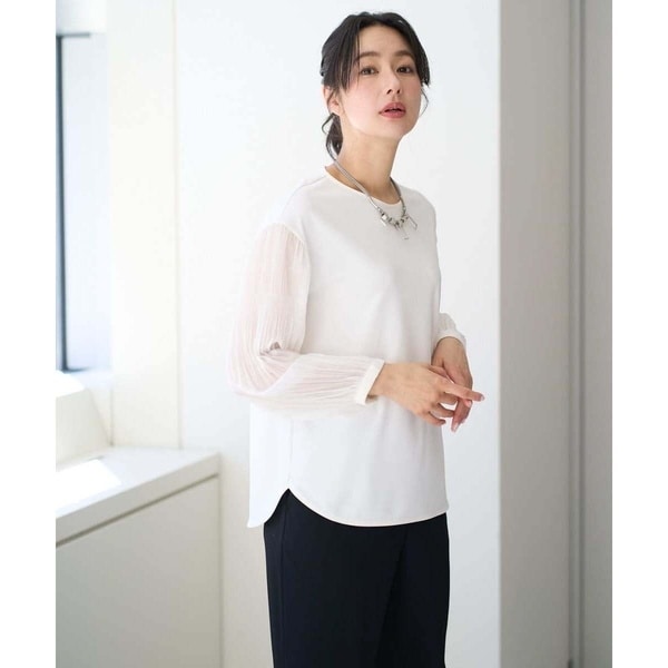 ・身頃には布帛見えする薄手のカットジョーゼット、袖にはシフォンを使用し、細やかなマジョリカプリーツを施しました。