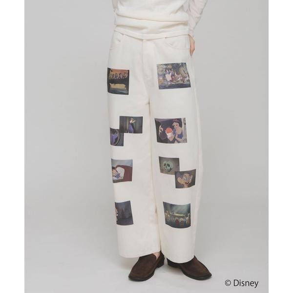 KBFよりディズニーコレクションが発売されました。ディズニー『白雪姫』の名シーンをランダムに散りばめプリントした主役級パンツ。OFFはヴィンテージ感のあるカラー仕様、 CHARCOALはモノトーンで纏めました。ウエストは後ろゴム仕様になっており、紐も通しているので調整して穿いていただけます。ベーシックトップスに映えるおすすめな1着です。