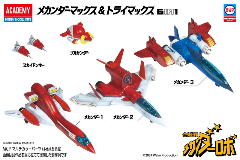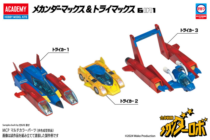 1977年よりTV放送された「合身戦隊メカンダーロボ」で活躍したメカンダーマックス&トライマックスが、スナップタイト・プラモデルキットとして登場します。
