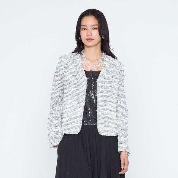 自然がつくり出す奇跡の宝石と言われるスキャロップパールをイメージした、パール刺繍のチェーンブレートで美しく軽やかに表現したツイードジャケットです。