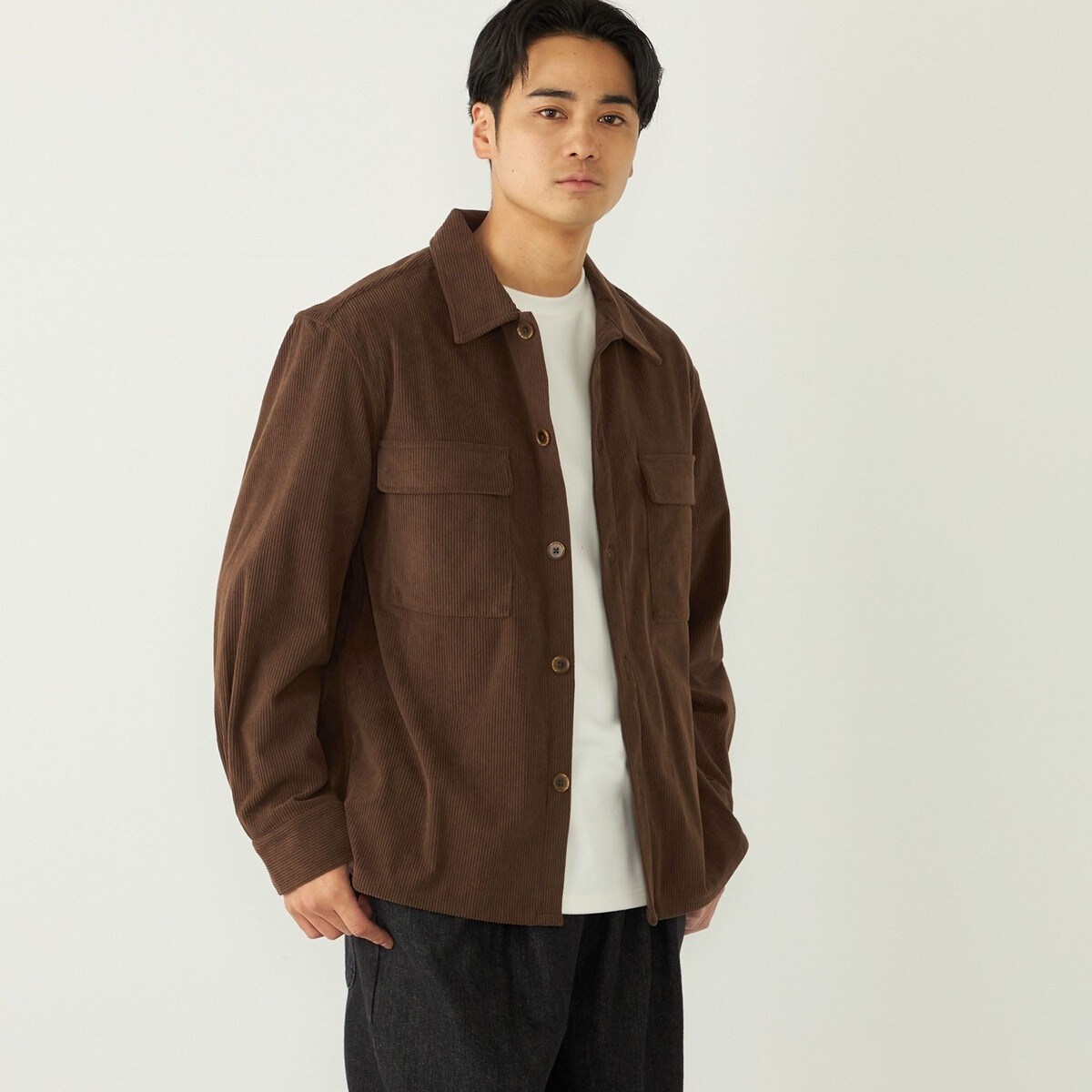 ポリエステル糸を使用したコーデュロイのシャツジャケット。