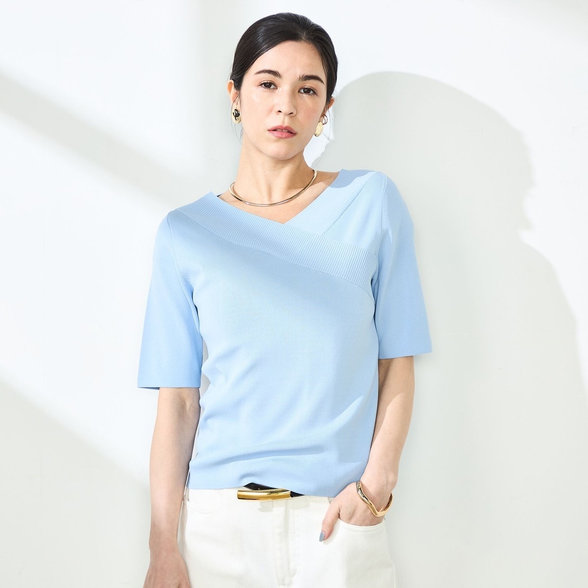 バックボタン5分袖ニット≪手洗い可能≫