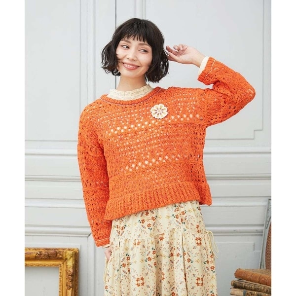 ホコモモラ/シビラMolinoチュールヤーン透かし編みニットカーディガン新品