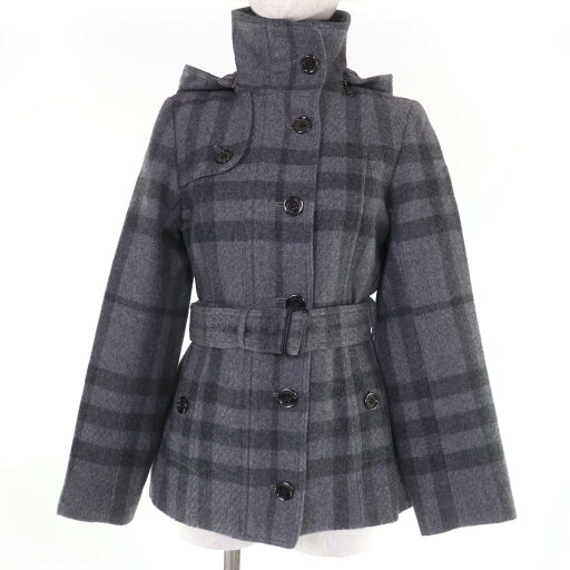 極美品☆BURBERRY LONDON バーバリーロンドン ウール モヘア混 裏地ノバチェック柄 ツイード コート ブラック系 38 正規品 レディース【中古】
