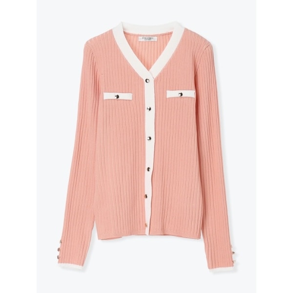 【25AW新作】レイヤード風デザインでこなれ感アップ◎重ね着風配色リブカーディガントップス(長袖)