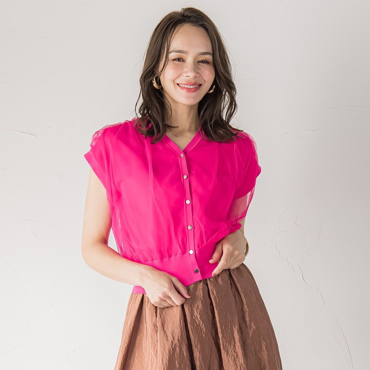 新品チュールレイヤードカーディガン ベージュ シースルー 長袖カーディガン