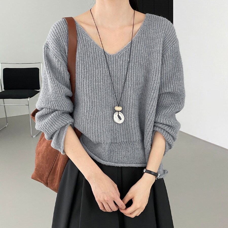 新品・未使用♪EMMA CLOTHES【エマクローズ】♪セーター ニット ボートネックリブ編みスプリングプルオーバーニット♪Lサイズ♪