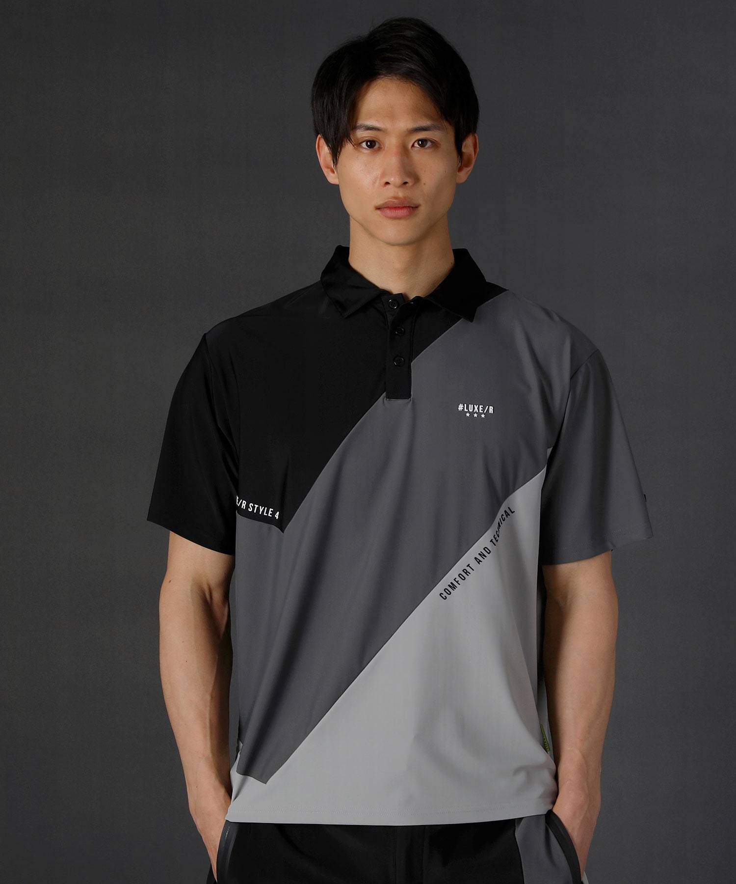 LUXE/Rスムースストレッチロゴプリント半袖ポロシャツ