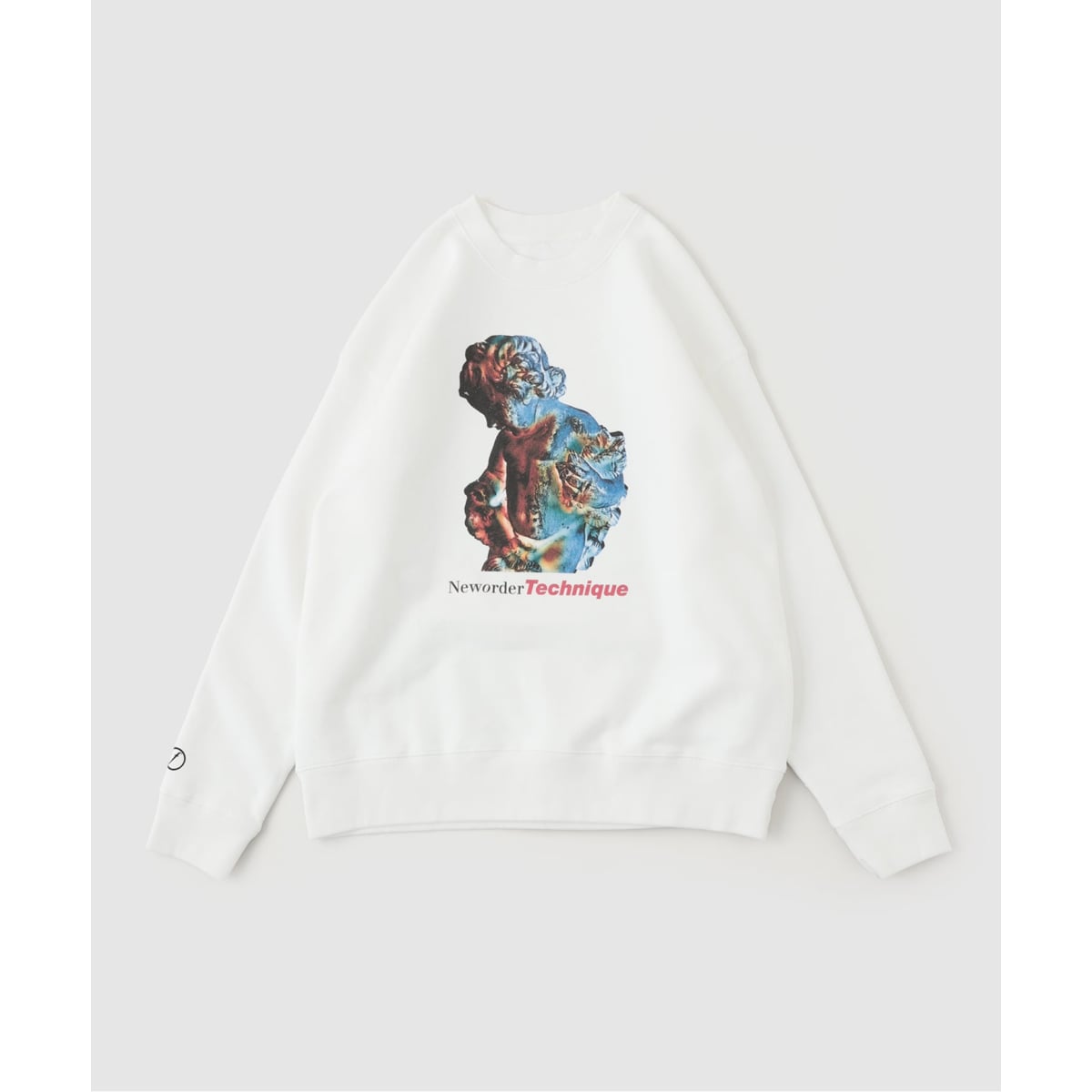 英国の伝説的バンド「NEW ORDER」のアルバム『TECHNIQUE』のアートワークをモチーフにしたスウェットプルオーバー。