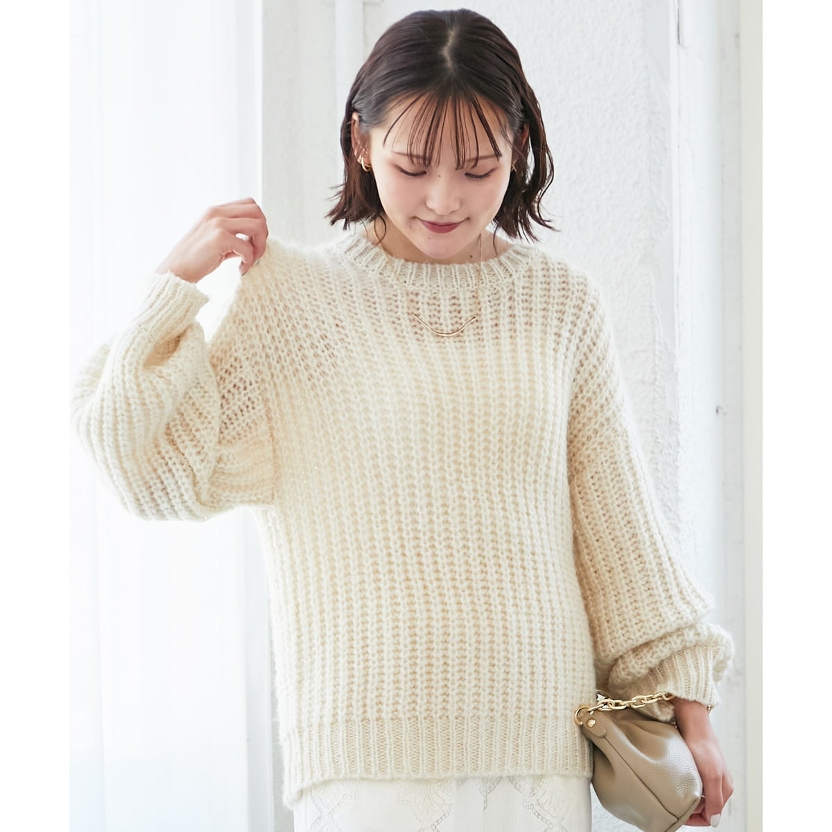 ふわふわ感の風合いとざっくり感がかわいいローゲージニット。