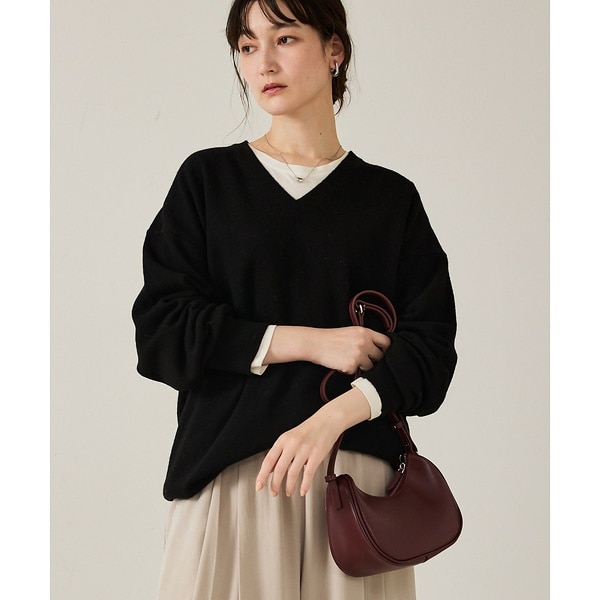 縦長に開いたVネックが顔周りをすっきりと見せ、抜け感を演出。