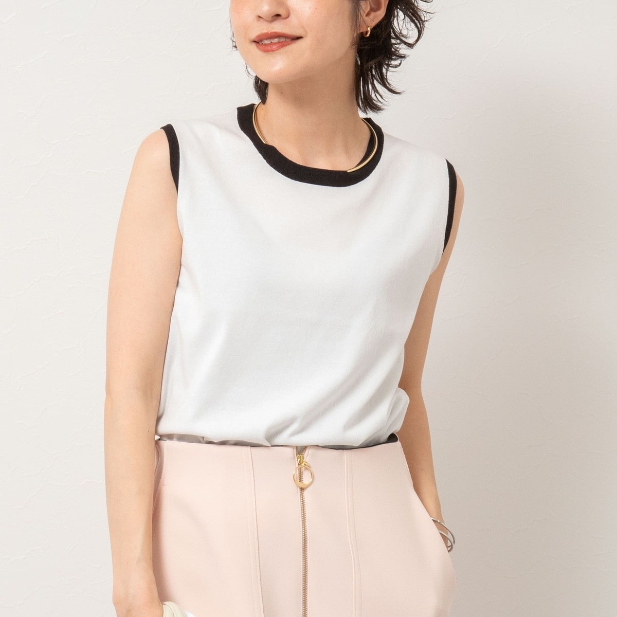 《アンサンブル対応》《手洗い可能》フレンチリネンノースリーブプルオーバーニット