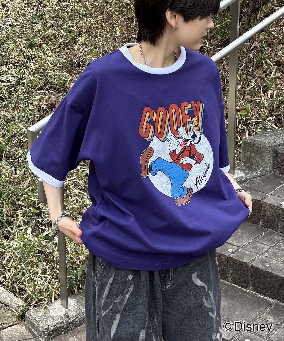 レトロな色合いのグーフィーとリンガーTシャツの掛け合わせ。