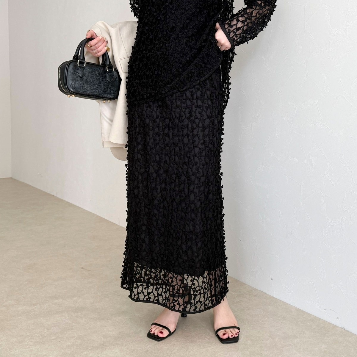 ・全体にあしらった立体的なドット刺繍が目を惹く存在感のあるスカート