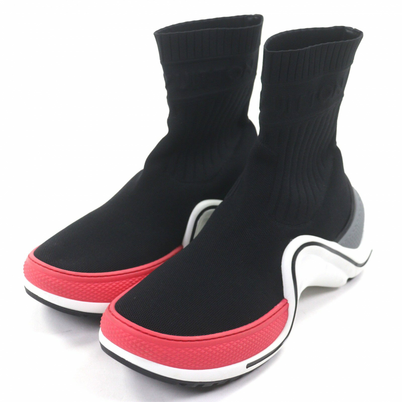 【ドンドン見直し】極美品◎正規品 イタリア製 LOUIS VUITTON ルイヴィトン 20AW スリーブレス ミニドレスインモノグラム ウールニット ワンピース 黒×赤 XS【中古】