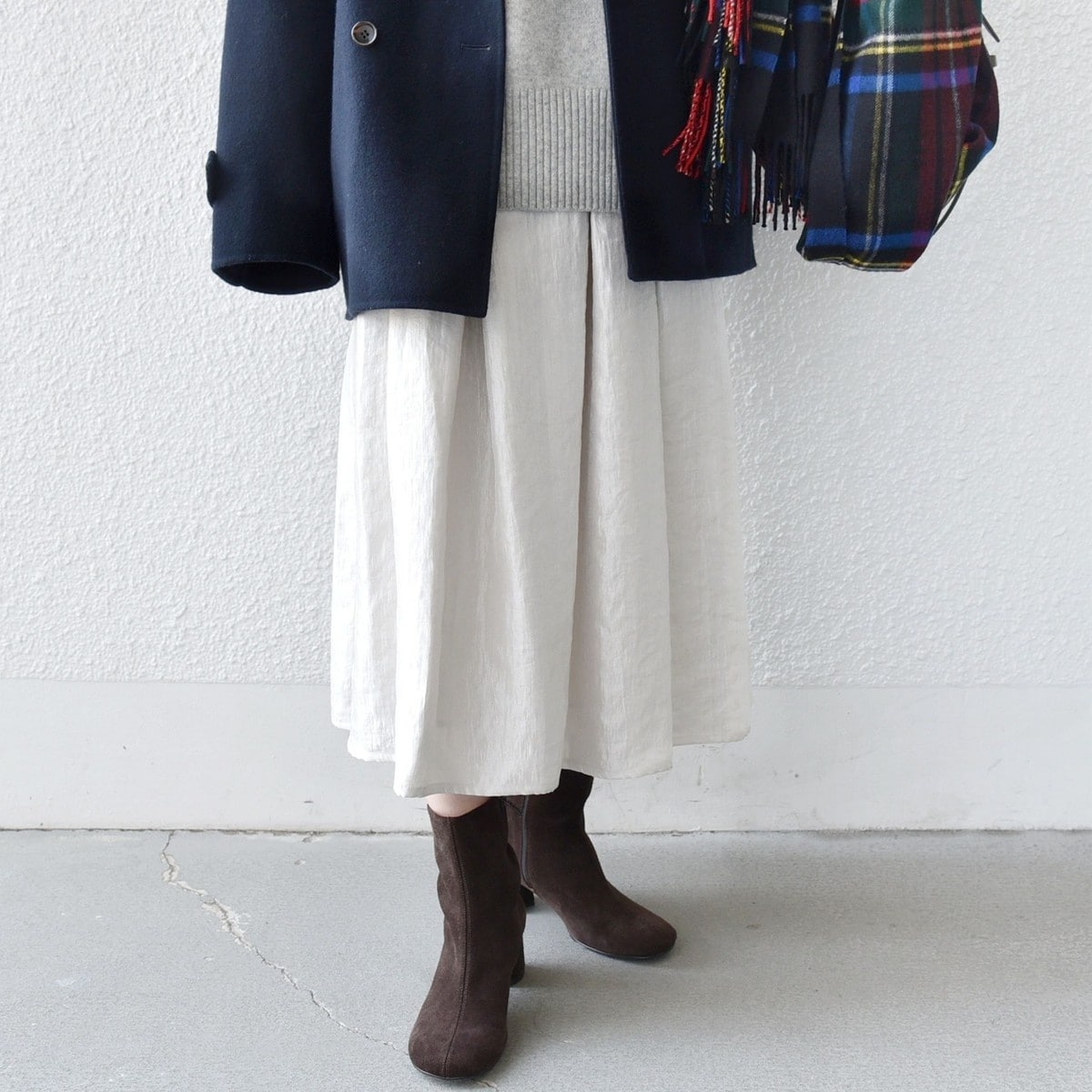 ブーツやスニーカーにも合わせやすい丈感でお作りしました。