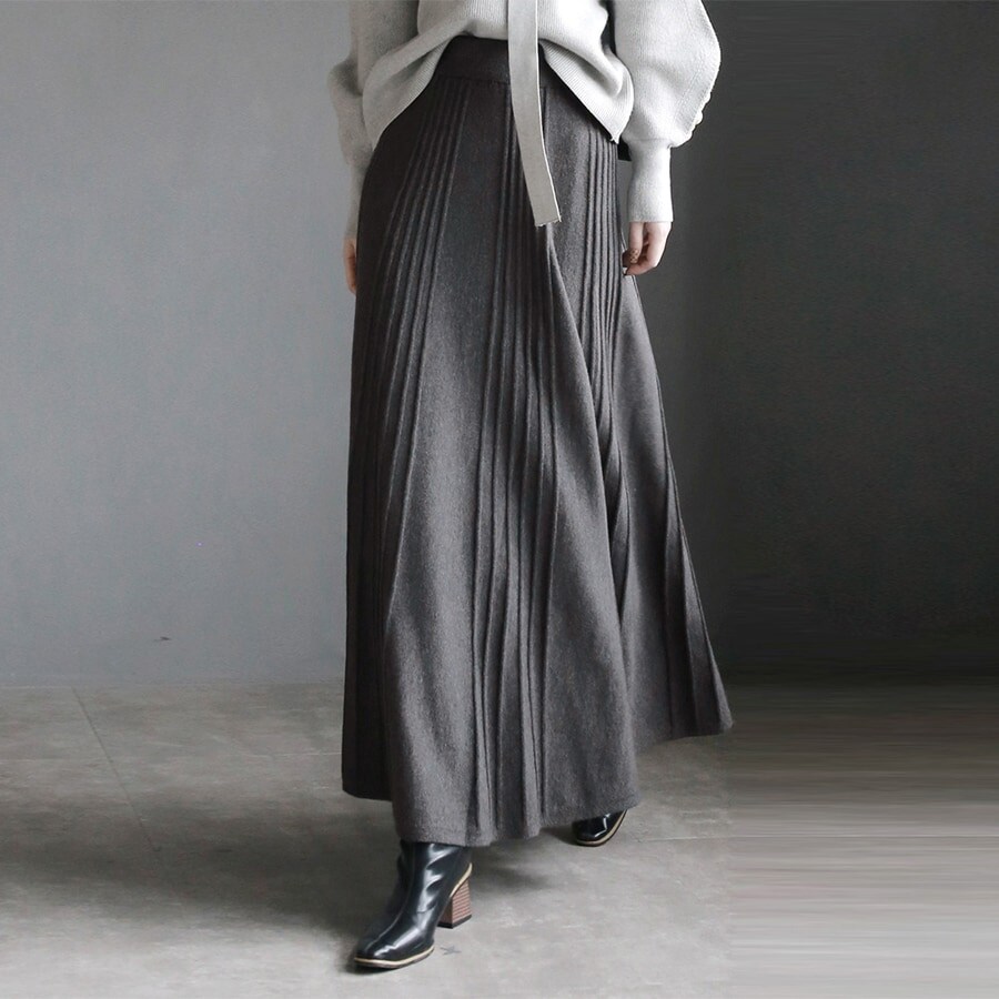 プリーツスカート グレー レディース フレア ロング スカート Aライン