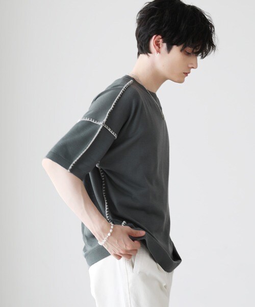 k■フィフティーファイブディーエスエル/55DSL リネンブレンド 5分袖ニットセーター【S】灰色系/ディーゼル/MENS■33【中古】