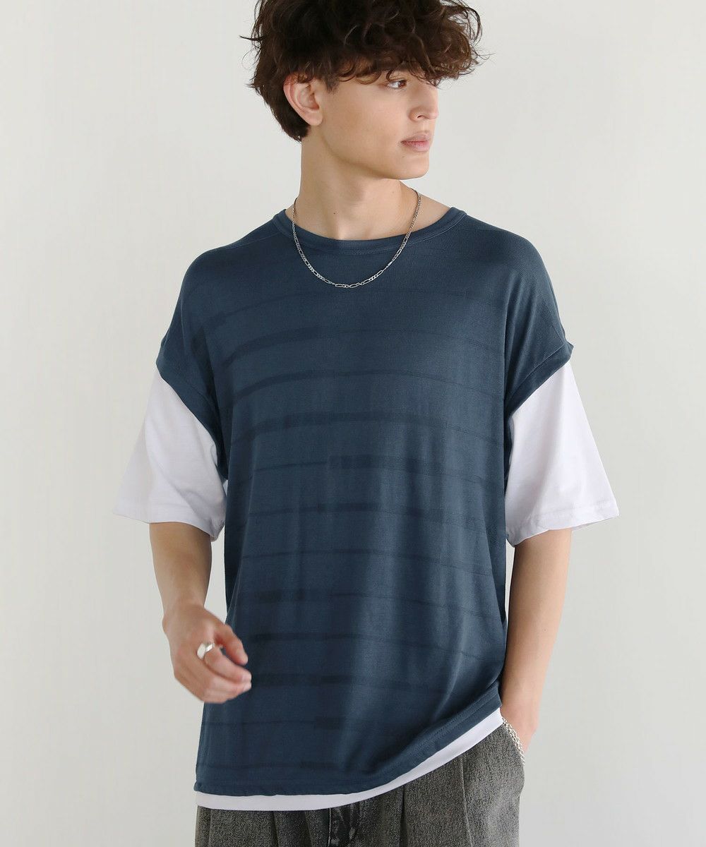 パイナップルニット半袖フェイクレイヤードベストTシャツ
