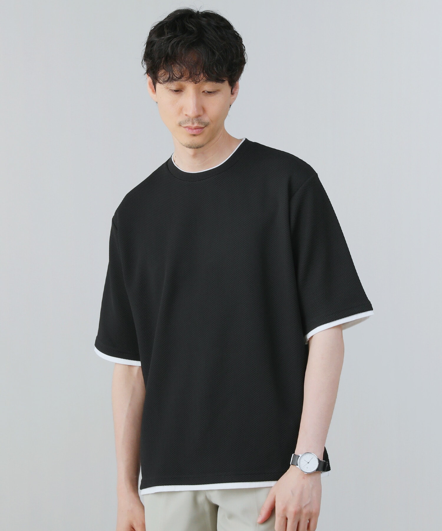 メランジパイルニット半袖クルーネックTシャツ