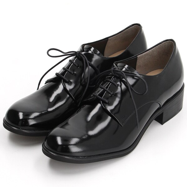 ヒールアップレースアップシューズ/24cm/BLK/フェイクレザー/6488