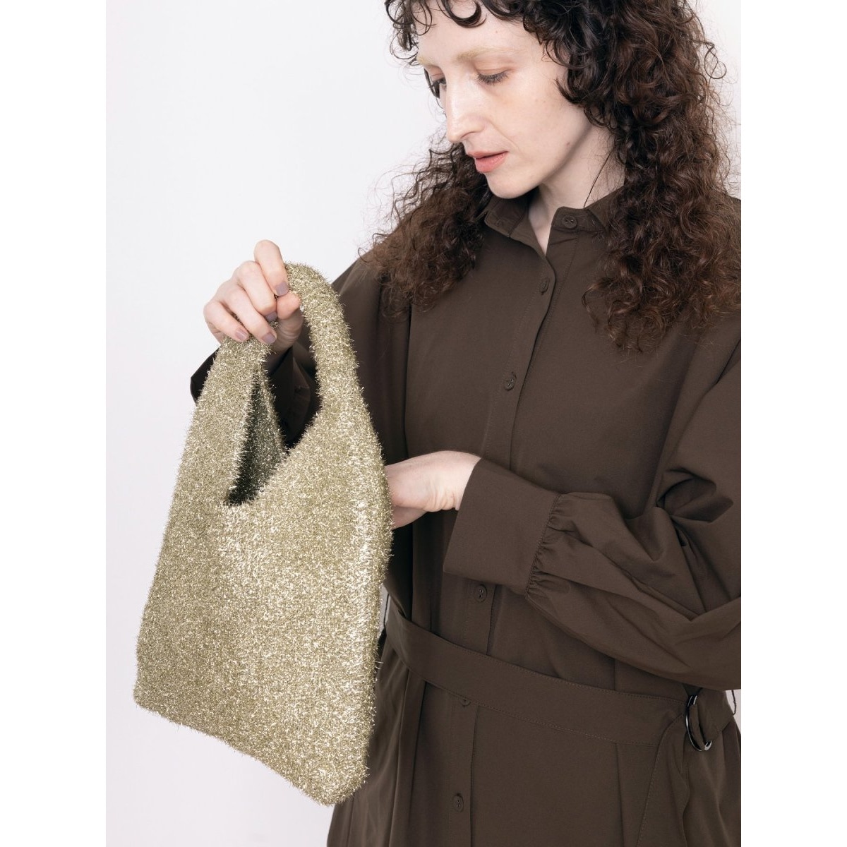毛足の長いラメ素材を使用し、光を受けてきらめく華やかな表情が魅力のラメバッグ。