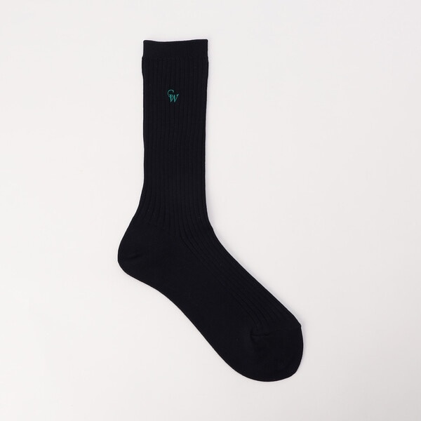 縦の畝がはっきり見えるような凸凹感が特長のシンプルなリブ編みソックスです。