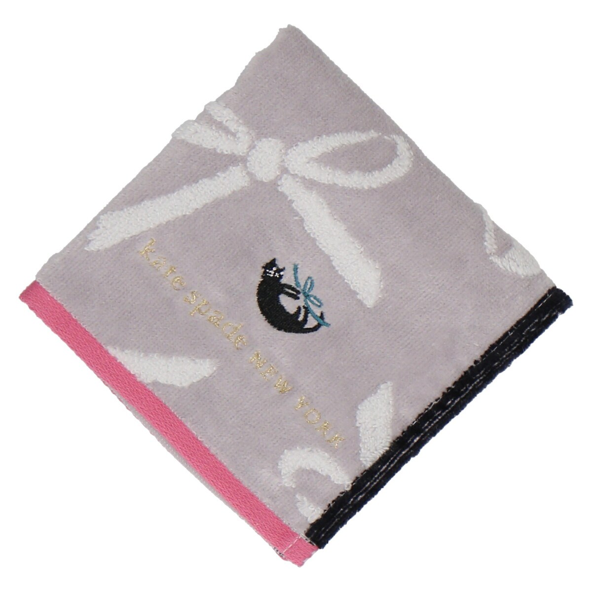 ネコをワンポイントにしたリボン柄のタオルハンカチ。ご自分用にはもちろん、ちょっとした贈り物にもおすすめです。