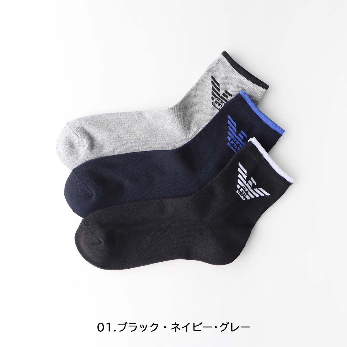 エンポリオアルマーニ新品!3足セット マーク&ロゴ スニーカーソックス 25-27cm黒紺灰 送料無料 ハーフパイル靴下