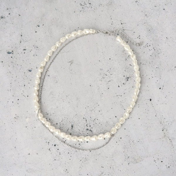 華奢なチェーンにフェイクパールがあしらわれた2連ネックレスは、ショート丈でキレイ目な仕上がりが魅力です。