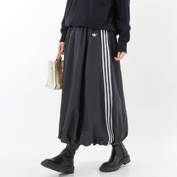 サッカーとファッションをボリュームのあるフォルムに融合させたアディダス バルーン ロング スカート。オンピッチとオフピッチでの美学にインスパイアされたコレクションの一部で、肌触りのソフトなプレーンウィーブの生地を採用。伸縮性に優れたウエストバンドで楽に履ける。
