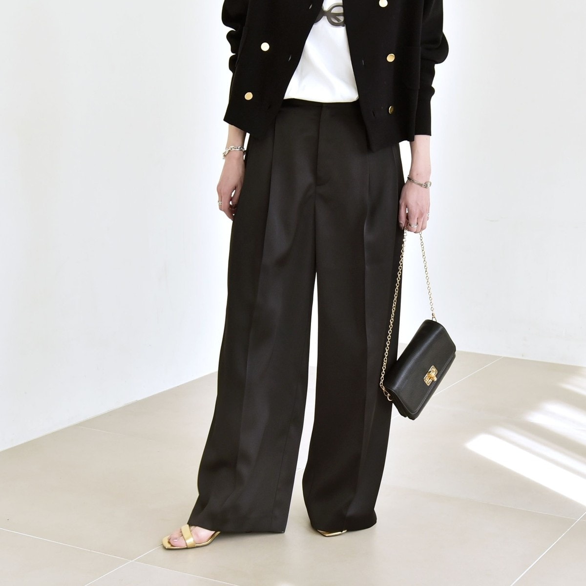 ヘビーサテンタックワイドパンツ≪手洗い可能≫