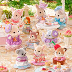 下記のAからDのうちいずれかの商品が入っています。Aラテネコの女の子(マカロンのドレス)、Bフェネックの女の子(いちごケーキのドレス)、Cみるくウサギの男の子(ティーカップの帽子)、Dヤギの女の子(紅茶のドレス)
