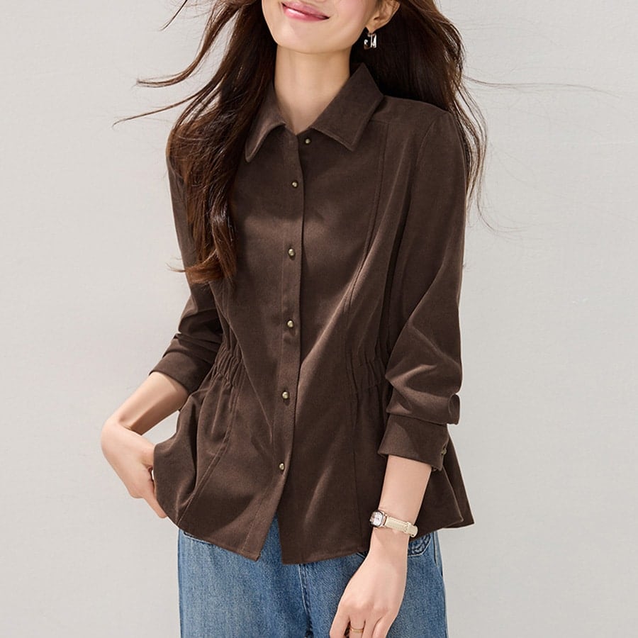 ウエストギャザー ホワイトシャツ シャーリングシャツ
