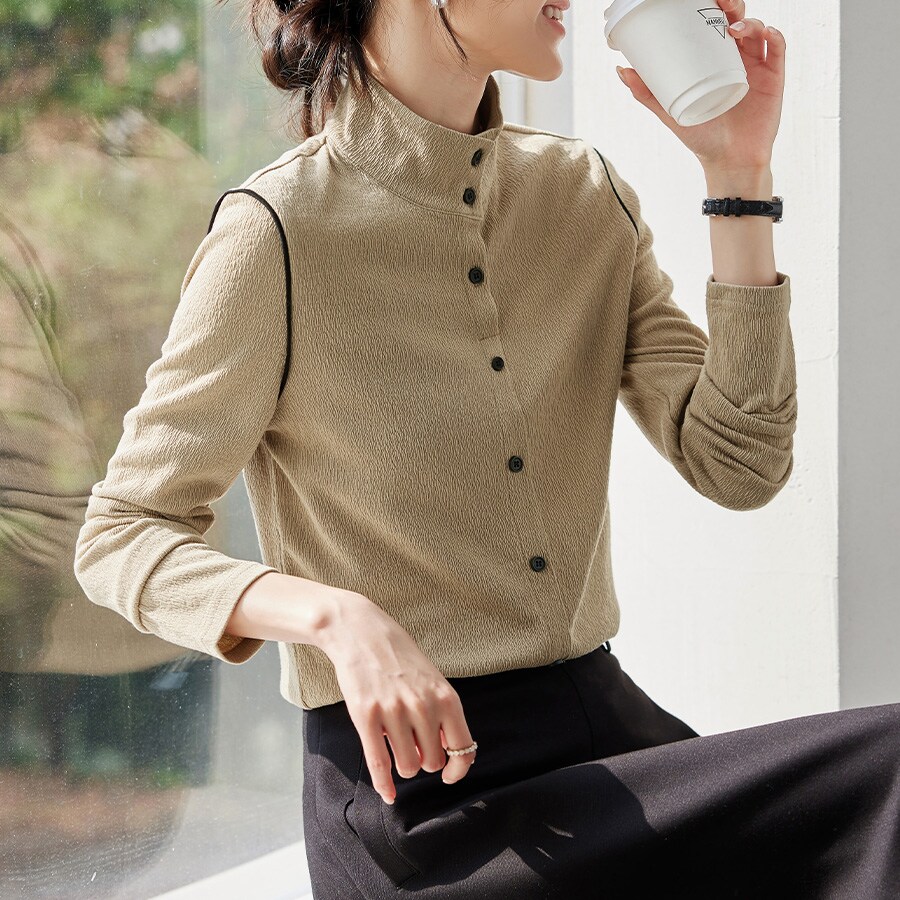 トップス ポリエステル素材 / 無地 / 長袖 / ストレートショルダー / LL・13号以上あり / 洗える / スタンドカラー / ハイネック・タートルネック / パーティー・結婚式・二次会 / セレモニー・入学式・卒業式 / レギュラー丈(トップス)