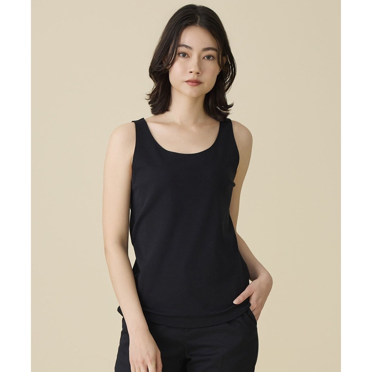シアーアイテムを格上げする、計算されたシルエットのタンクトップ■デザインレングスやシルエットにこだわり、繊細さの中にも肌に張り付きすぎない程よいゆとりを持たせたタンクトップです。キャミソールほど露出が高くないため、上品に肌見せができ、シアーアイテムのインナーとしても取り入れやすい一枚です。ベーシックなカラー展開で幅広く活躍するので、色違いで揃えて頂くのもおすすめです。■素材天然綿の持つ肌触りの良さに加え、上品な微光沢と適度なハリ感があり、着心地に安心感のある素材です。■同素材タンクトップ(KKWMGM0336)