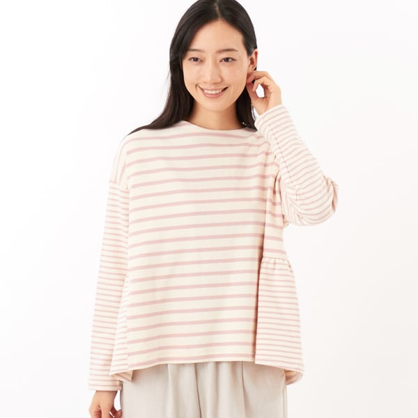 スウェット/2/コットン/WHT/ボーダー/80270261/バスク裏毛のショートスウェット