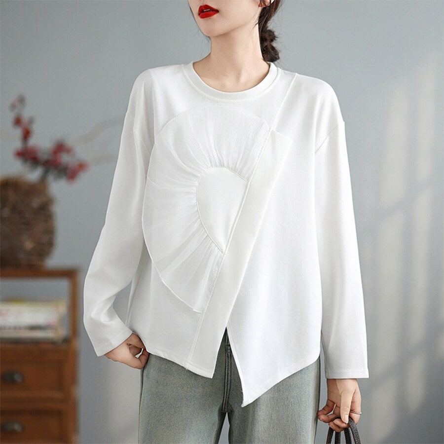 プリーツプリーズ イッセイミヤケ デニム転写 クロスチェーンモチーフ 半袖 クルーネック トップス トップス PP61-JK601 アイスブルー ホワイト 3