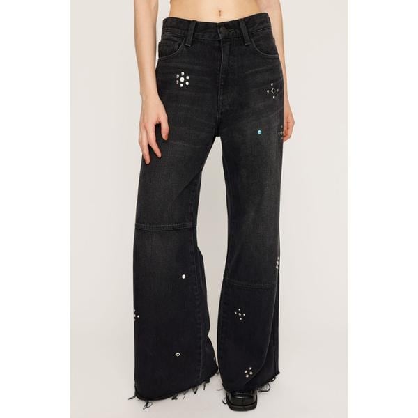【STUDS SEAM DESIGN FLARE PT-E】■POINT:大胆にスタッズを散りばめた穿くだけでスタイリングの主役になれるフレアデニムが登場。■DETAIL:程よくワイドなフレアシルエットに立体的で深みのあるフェード加工を加えた事で、ブラックデニム特有のモダンで洗練された印象に仕上げました。さらに様々なサイズのメタルスタッズとパールスタッズを全体に施したことで、穿くだけで目を引き、コーディネートを際立たせてくれます。■STYLING:スタッズなどエッジの効いたパーツを使用しているため、女性らしい柔らかなシャツやブラウスとの相性も良いです。またデニムオンデニムでも楽しめるよう、同シリーズでビスチェ(030IAY10-1001/STUDS DENIM BUSTIER-E)の展開もあります。■FABRIC/MATERIAL:コットン100%のデニム地を使用。■透け感:なし■光沢感:なし■伸縮性:なし■裏 地:なし本品は素材の特性上色落ちします。洗濯、クリーニング、着用(使用)時に他の衣類や雑貨、家具類に色移りする事があります。特に汗や雨等で湿った状態では、色落ちが顕著になります。白、淡色との組み合わせは避け、お取り扱いには十分ご注意下さい。 本品は裁ち切り始末にしています。着用や洗濯、クリーニングの繰り返しにより、ほつれが増したり、裁ち切り部分が丸まってくる事がありますので、ご了承下さい。ほつれが目立った際はほつれた糸を引っ張ったりせず、カットして下さい。本品はファッション性を重視した非常にデリケートな装飾をしています。下記の点にご注意下さい。・着用(使用)や洗濯、クリーニング時に加わる物理作用により装飾の脱落、破損、光沢消失が生じる事があります。・装飾は引っ掛かり易く取れ易いので周りのものとの接触に十分にご注意下さい。・肌に触れ、刺激を感じる際はご着用をお控え下さい。[注意事項]※画像の商品はサンプルです。実際の商品と仕様、加工が若干異なる場合があります。※画像の商品は光の照射や角度、お使いのモニター環境により、実物と色味が異なる場合がございます。※着用、お取り扱いの際は、アテンションタグをご確認ください。※一部予約商品につきましては生産上の都合によりお届け予定日や店頭発売と前後する場合もございます。※追加生産商品は、