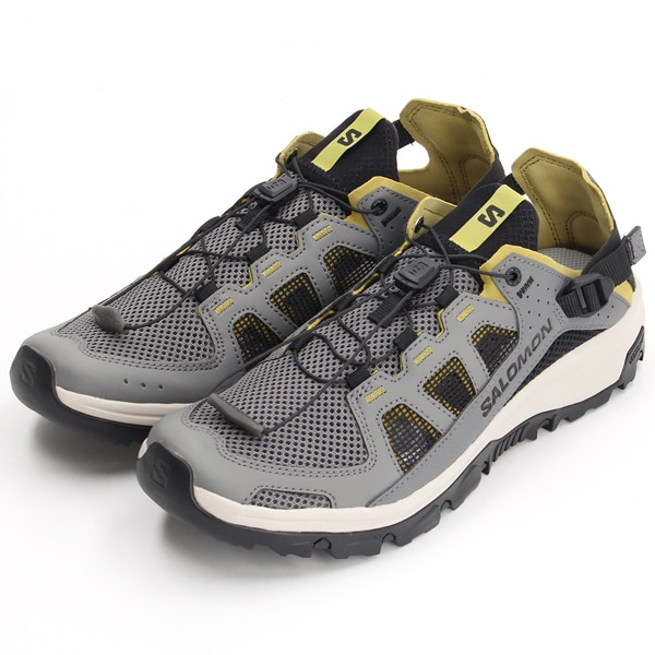 TECHAMPHIBIAN 5 は補強トゥキャップと完全縫合構造により足を確実に保護。アウトソールが地面に密着し、濡れた滑りやすい地面でも信頼できるグリップを発揮します。かかとを折りたたんで履ける多目的に使いやすいデザイン。アッパーには速乾性と通気性に優れた素材を採用しました。