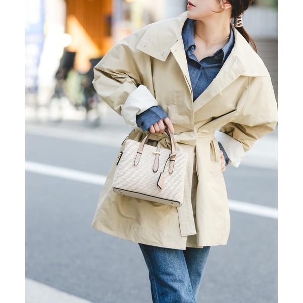 季節感のある涼しげな雑材風のメッシュ素材と、滑らかな質感を組み合わせたデザイン。落ち着いた配色のバイカラーデザインが、コーディネートを都会的な印象に引き締めてくれます。